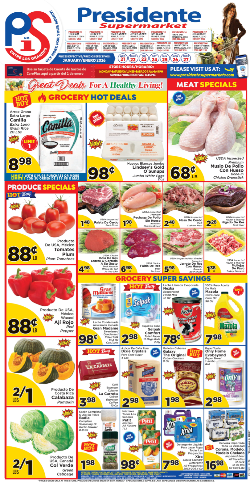 Check the Presidente weekly ad for holiday and special hours. Store hours may vary on holidays, so plan your shopping in advance to avoid any inconvenience.
