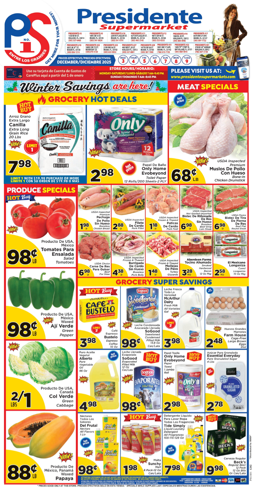 Check out the latest Presidente weekly ad 3-9-Dec,2025 to save on your favorite groceries. Every week, Presidente brings fresh deals and big discounts on products you need. From fresh produce to snacks and household items, this week’s flyer is full of ways to save. Don’t miss the chance to grab limited-time offers and exclusive promotions at your local Presidente store.